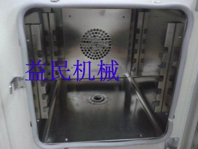 ▲(1)、此款烤箱在工作室后部装有发热管,后面装有鼓风装置,温度控制仪控制温度恒定及高低,工作时经发热管加热再经鼓风装置循环流动,确保温度均匀,四周圆弧设计,搁板上下间距可调,内置感温探头。