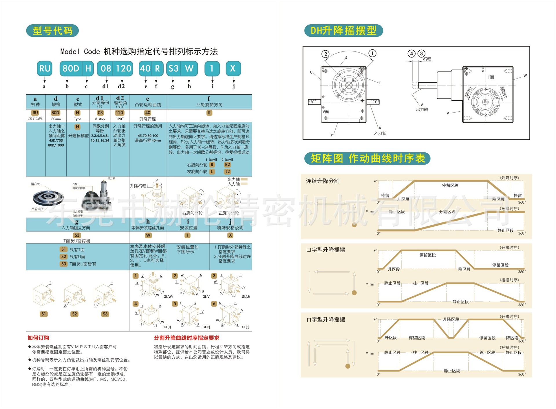 它的机械结构:一根由电机驱动的输入轴,凸轮副,输出轴或法兰盘。用于安装工件及定位