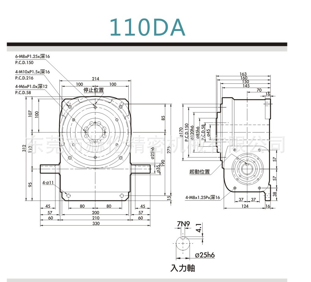 由于本分割器安装面相对于输入、输出轴的垂直或平行度较高,设备的安装基面一定要保证使本分割器的输入、输出轴方向与设备所需的输入、输出方向同轴。不能偏斜或偏心。否则,不但影响到输出精度,而且会严重地损坏分割器。因为这时,该分割器处于不正常的受力状态。