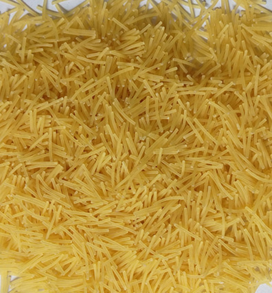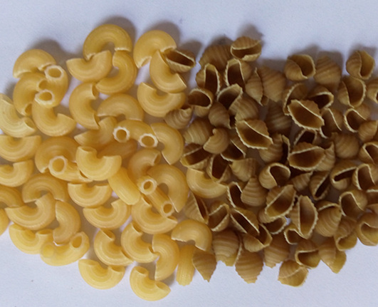 意大利面、通心粉生产线采用的是先进的挤压技术。配合千变万化的通心粉模具,从而生产螺旋、贝壳、方管、圆管、圆圈,长的、扁的、空心的、细如发丝的,用鸡蛋染成黄色的,用菠菜染成绿色的,还有用墨鱼染成深红色的出各式各样的通心粉。,可以用纯白的大米粉、金灿灿的玉米粉、还可以用低糖的荞麦、无糖的胚芽粉生产出糖尿病人食用的通心粉 。