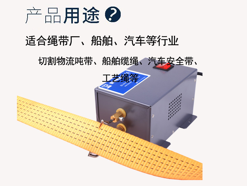 适合绳带厂、船舶、汽车等行业,切割物流吨带、船舶缆绳、汽车安全带、工艺绳等。