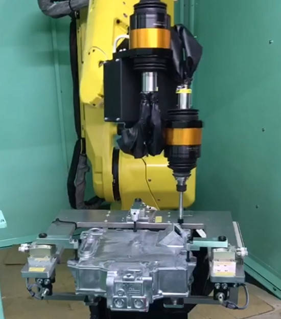 机器人去毛刺加工,汽车、航天的部分零部件,都有使用NAKANISHI高速主轴,搭配机器人,加上浮动,进行柔性去毛刺。毛刺量小的,可以使用NR3060、自动换刀主轴NR3060-AQC.若是大毛刺量的,可以选用1200w大功率,大扭矩主轴E4000系列,进行去毛刺加工,使用较多的主轴有BMS-4020、自动换刀主轴NR4040-AQC。