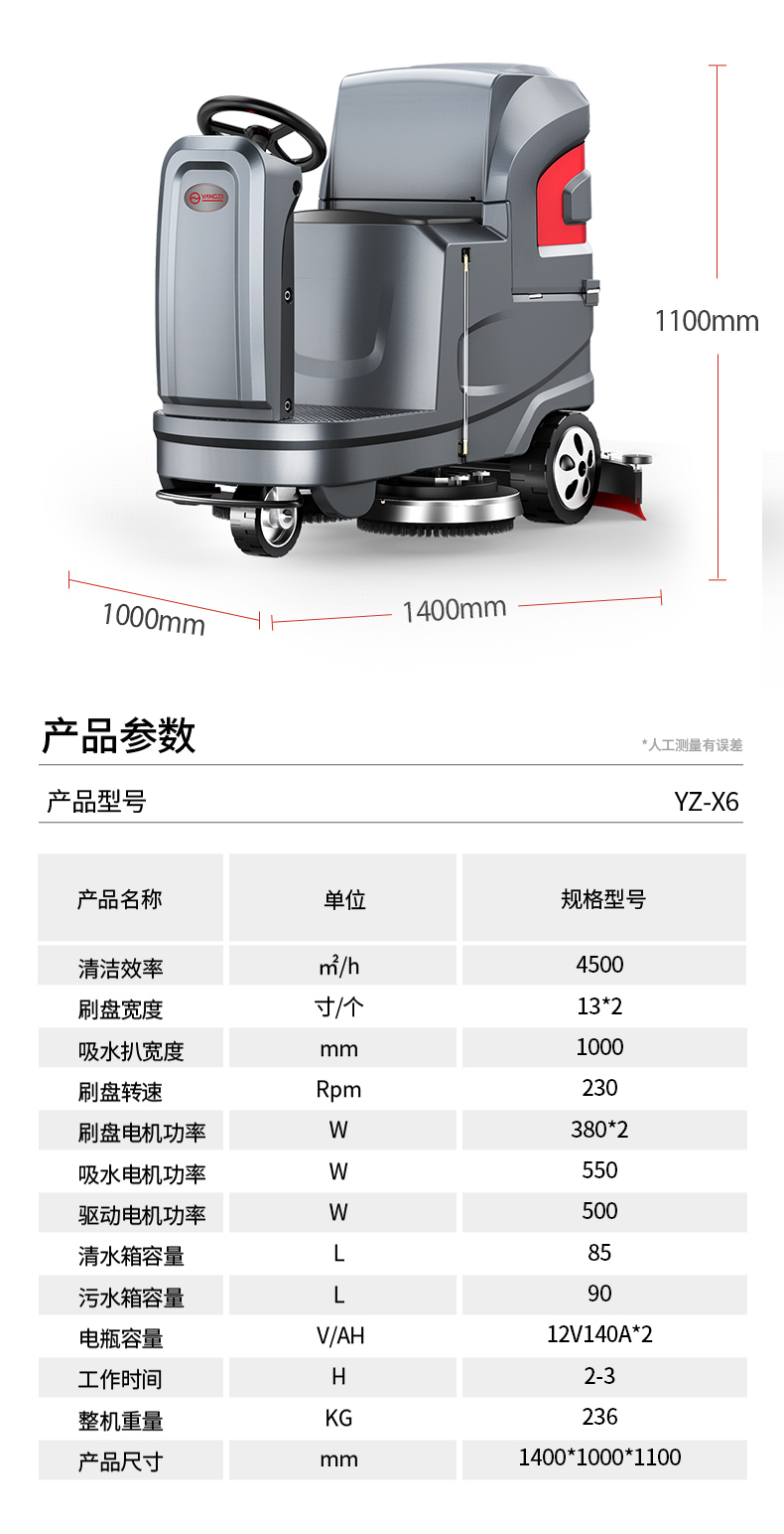 扬子X6商用工业电动拖地机驾驶式洗地机工厂物业车站地库擦地机性能特点: