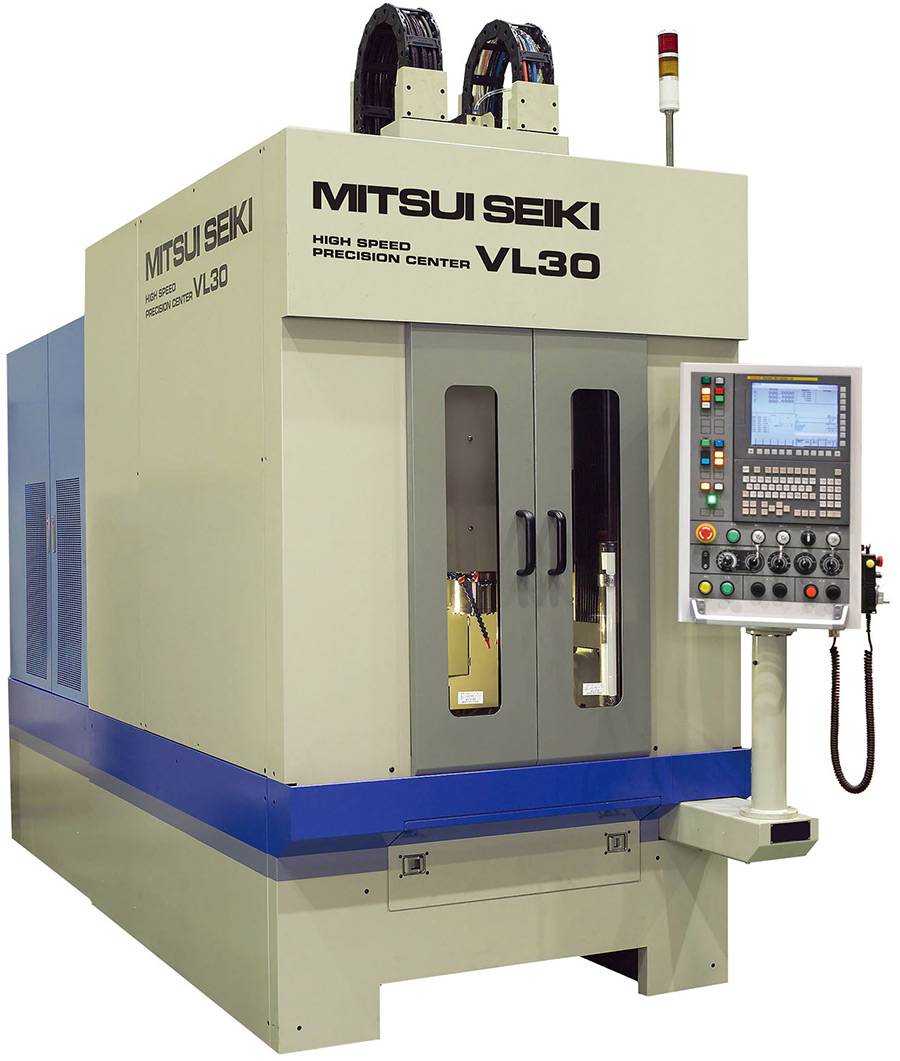 三井精机 VL30 型高精度中心,配备直线电机和驱动器,采用包括自动换刀器在内的标准设备进行数控,具有钻孔、镗孔、攻丝和铰孔的高生产能力。集成电路逻辑,闭环,具有完整的电气设备,可在 3 相 50/60Hz、200/220 伏交流电上运行。