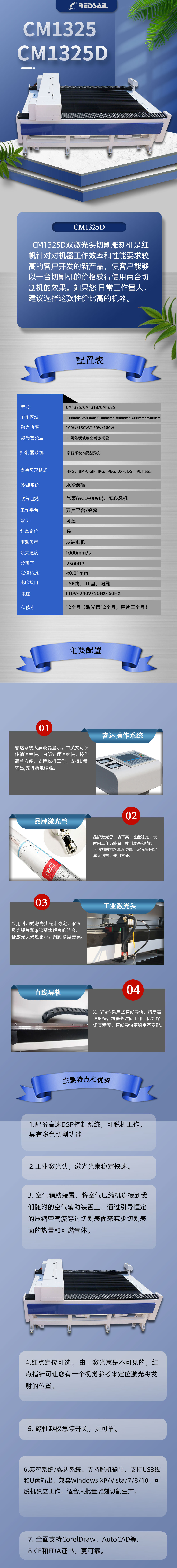 产品介绍:1,裁床在外观设计上美观大方,工作台牢固稳定可靠,能确保激光加工的高精度;前后贯通,使上下料方便,操作非常简单,便于大幅面的整版切割。