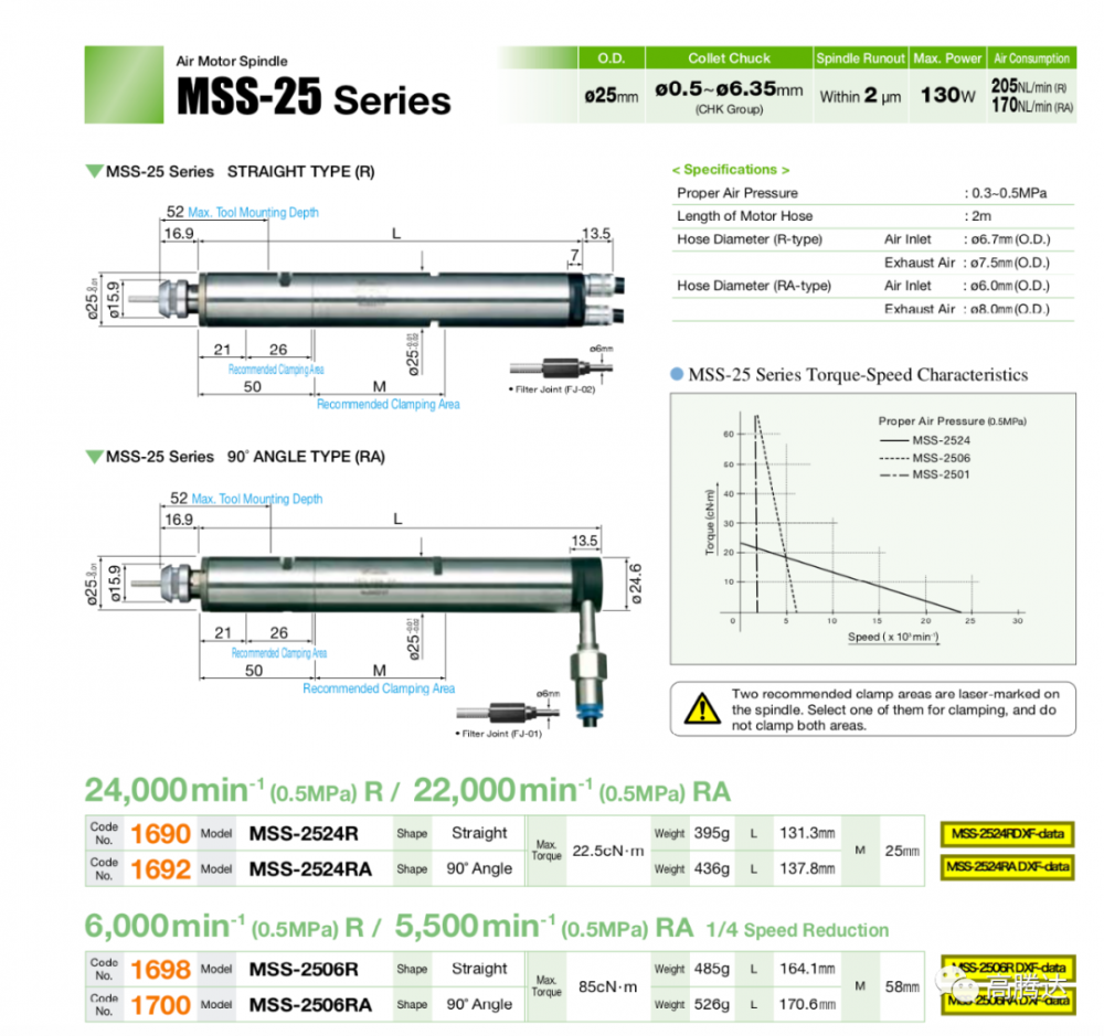 而采用NAKANISHI的气动马达主轴MSS-2506R 向前转速:6,000 min-1, 主轴小,可以轻松地安装在小型机器臂上。气动马达降低了镁材料爆炸风险。
