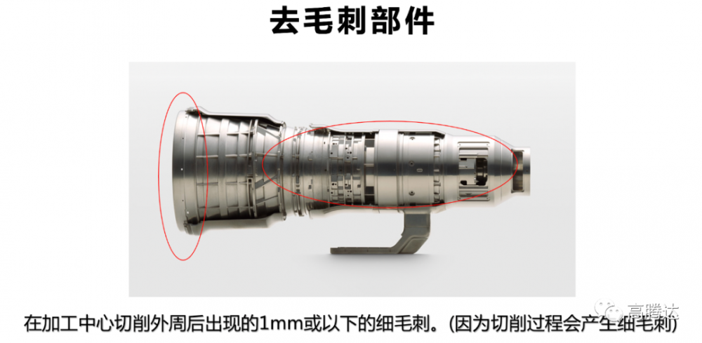 摄像机的外框结构采用镁材料,结构轻。但在切削过程中会产生细毛刺,在加工中心切削外周后,会出现1mm或更小的细毛刺。