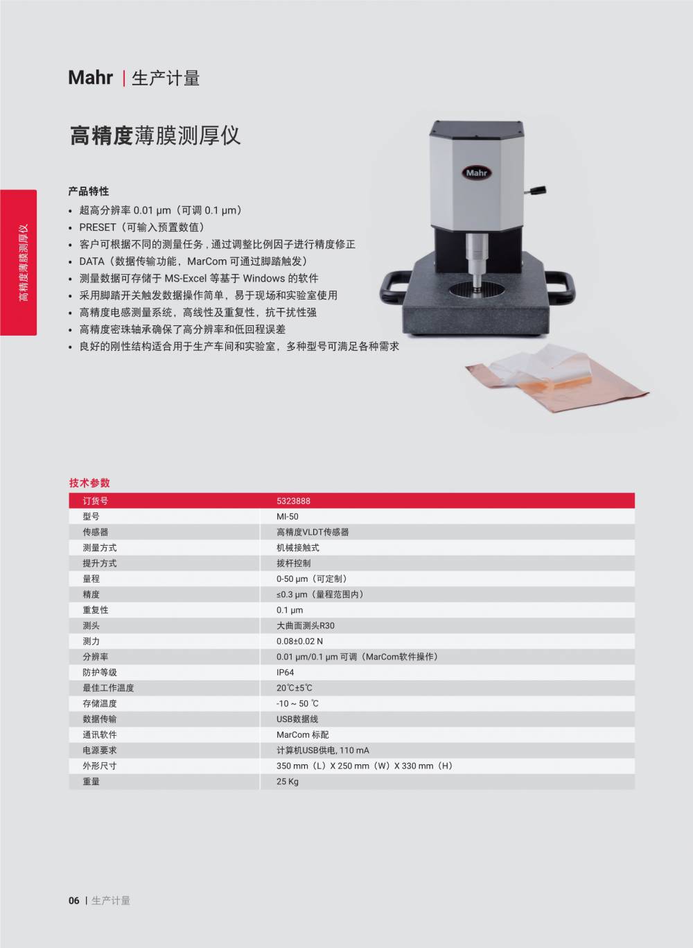 马尔 高精度薄膜测厚仪 Millimar MI-50 中文样本目录