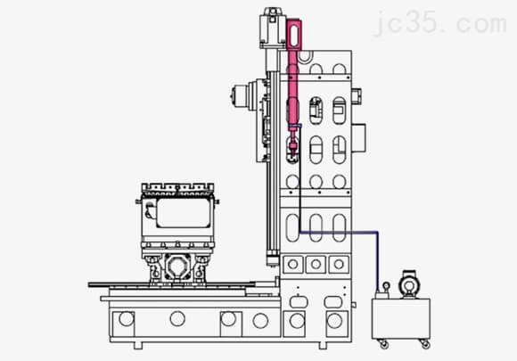 The Y-axis movement is counter balanced through a hydraulic cylinder.