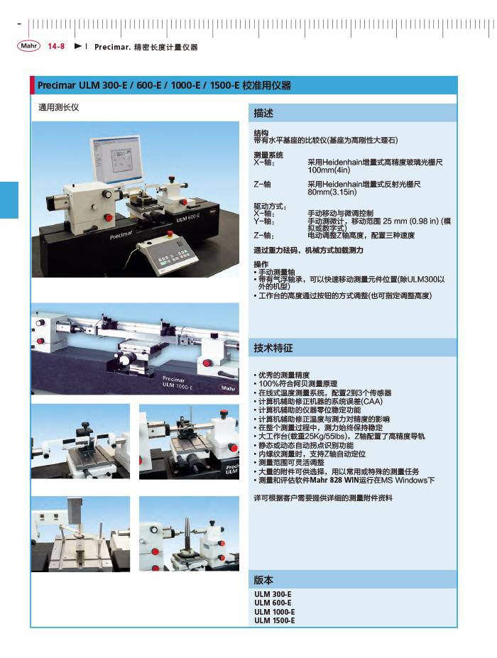 三、马尔 Mahr测长机ULM300/600/1000/1500技术特征