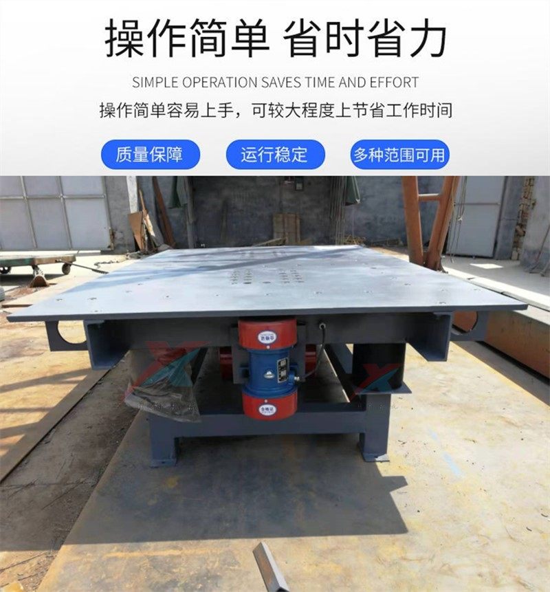 消失模铸造震动平台 高频低频振动台 水泥人防门振实台台面高度可调,适合试验用、成型落砂用的各种大小规格振动平台。勇梅机械振动平台被广泛应用于混凝土铸造行业、人防行业、防护门、冶金炉料现场工地作试件成型和预制构件震实各种板柱、梁等混凝土构件振实成型。振动平台在振动时,zui常见的现象是由于振动操作不当,造成模样变形、涂料层开裂等,从而造成相应的铸造缺陷。有些振动台本身由于激振力过大、同一组电机的偏振块不平衡也易造成模样变形。为此,主要应调整激振力和振动时间;对于尺寸较大而结构简单的铸件,可通过控制箱调节振动形式,